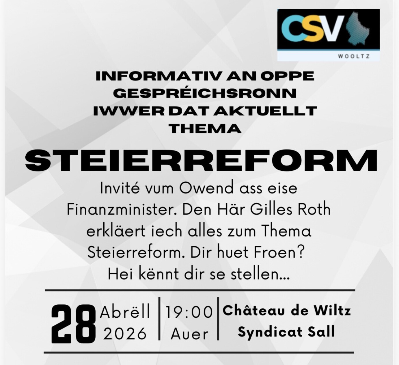 Informativ an oppe Gespréichsronn iwwer dat aktuellt Theam Steierreform.