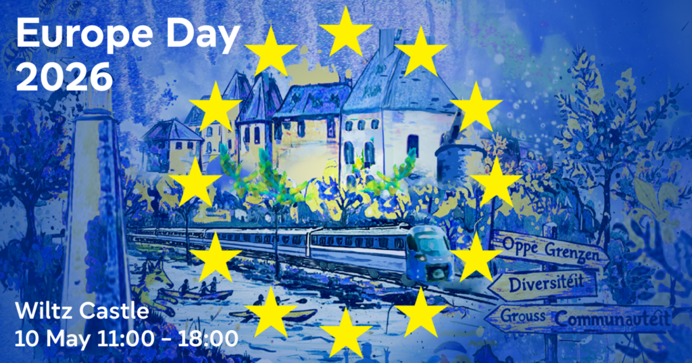 Am Sonntag, dem 10. Mai 2026, findet der Europatag im Schloss Wiltz statt, und es erwartet Sie ein festlicher Tag, der für alle offen ist. Lassen Sie uns die europäischen Werte von Frieden, Einheit und Vielfalt, die Europa vereinen, würdigen und feiern.