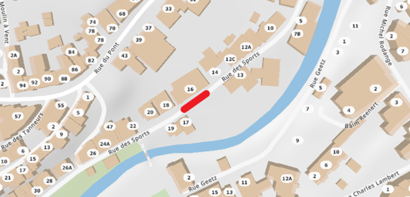 Der betroffene Straßenabschnitt ist während des Umzuges für den Verkehr gesperrt und das Parken ist verboten. Die Häuser N°17 bis N°48 sind über die „Rue Geetz“ erreichbar. |